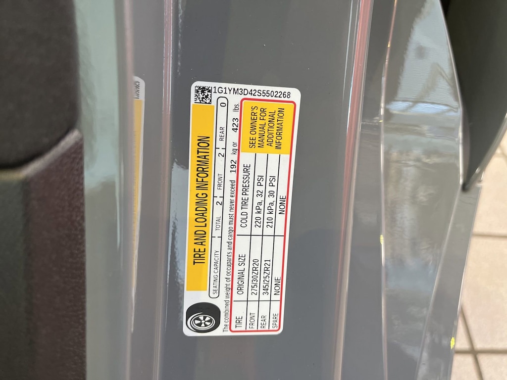 - Engine specification plaque, Genuine Corvette Accessory: