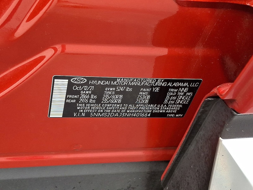 Calypso Red AWD 8-Speed Automatic with SHIFTRONIC 2.5L I4 2022 Hyundai Santa Fe SEL Price excludes tax, registration, and dealer conveyance fee of $799.