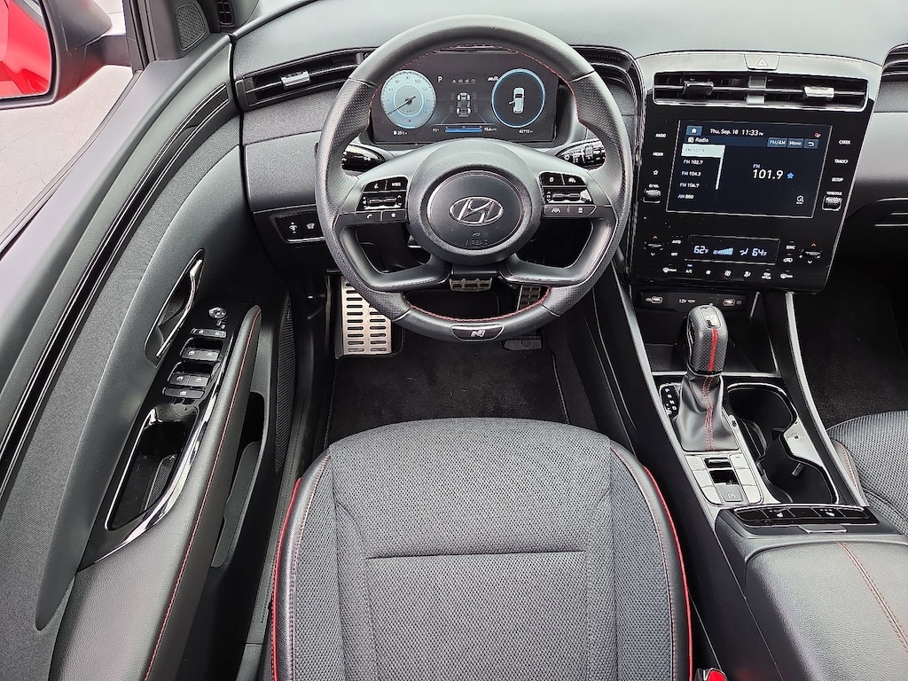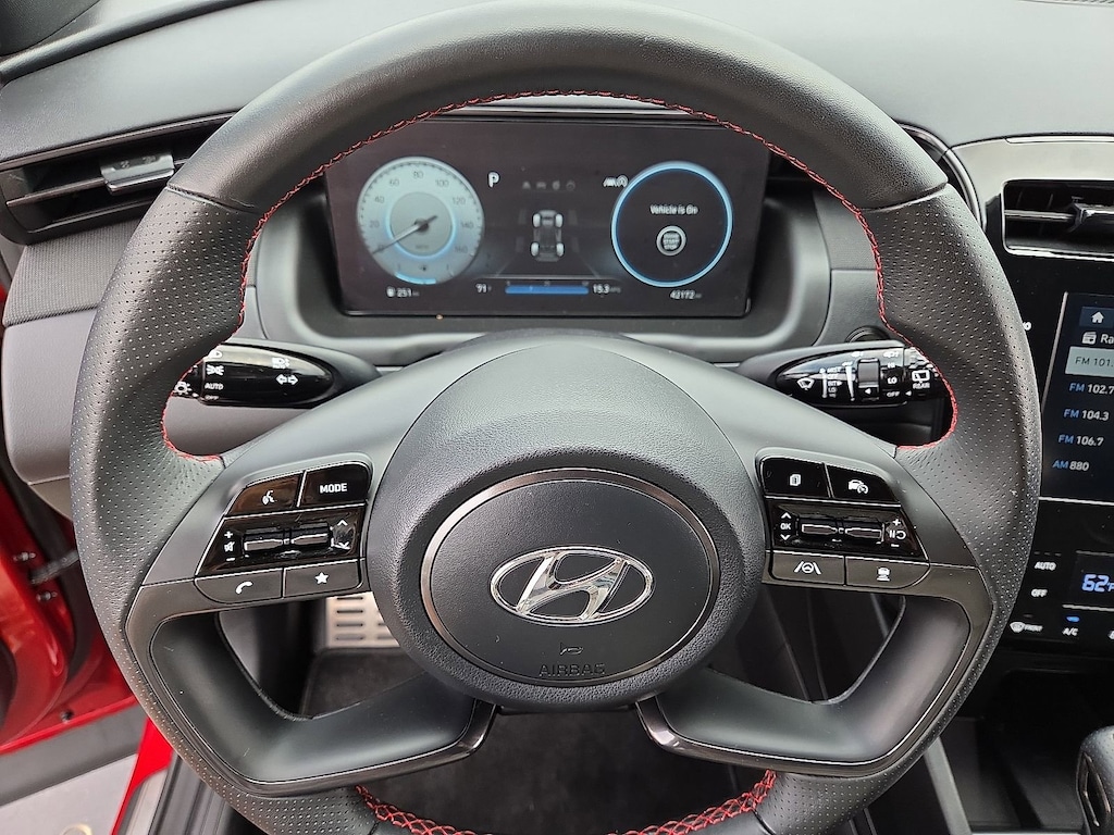 Red Crimson AWD 8-Speed Automatic with SHIFTRONIC 2.5L I4 DGI DOHC 16V LEV3-ULEV70 187hp 2022 Hyundai Tucson N Line Price excludes tax, registration, and dealer conveyance fee of $799.